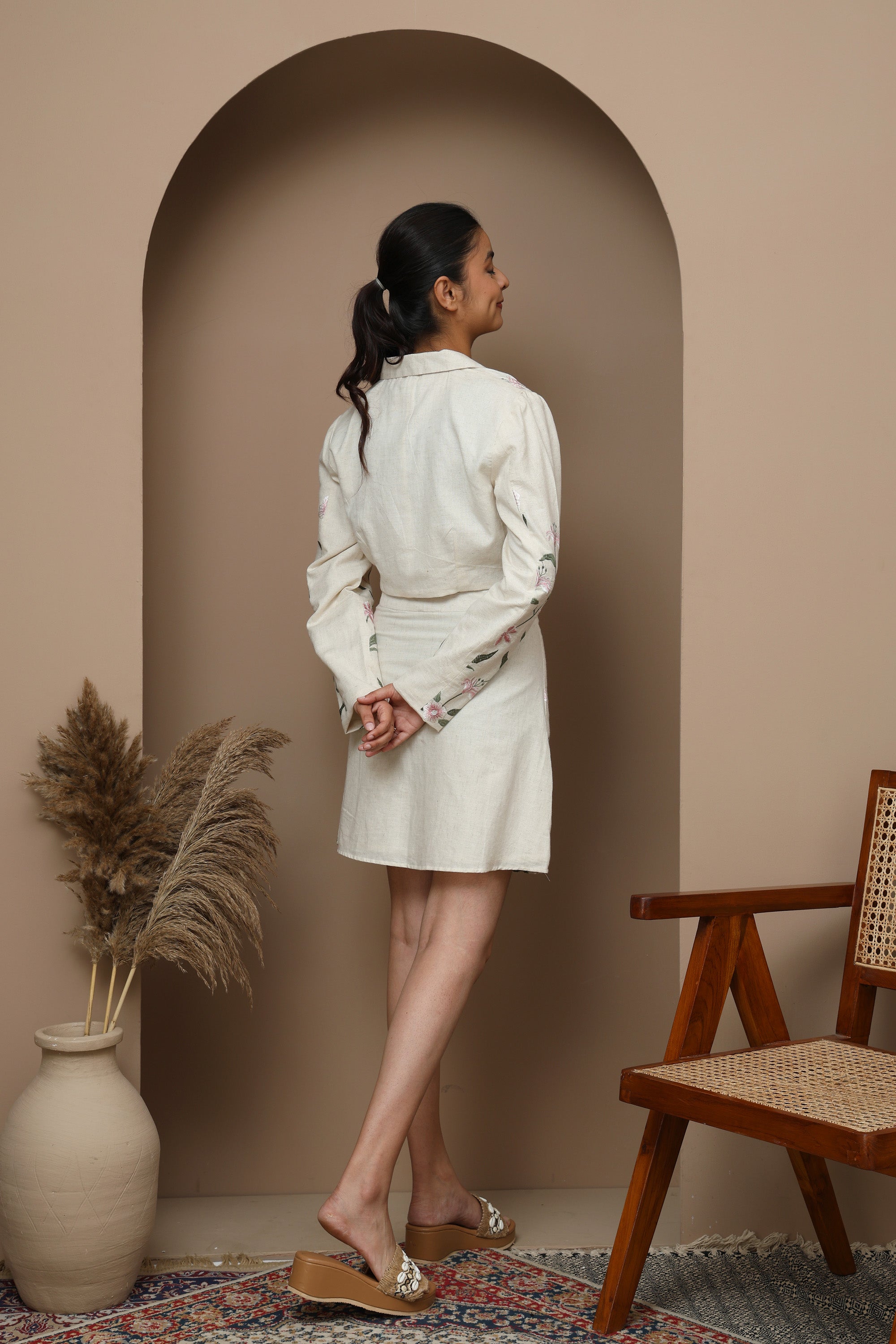 Pink Floral Cotton Full Sleeve Top & Skirt Set